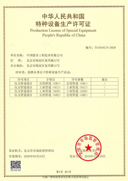 • ÖлªÈËÃñ¹²ºÍ¹úÌØÖÖ×°±¸Éú²úÔÊÐíÖ¤£¨Ñ¹Á¦¹ÜµÀ£©